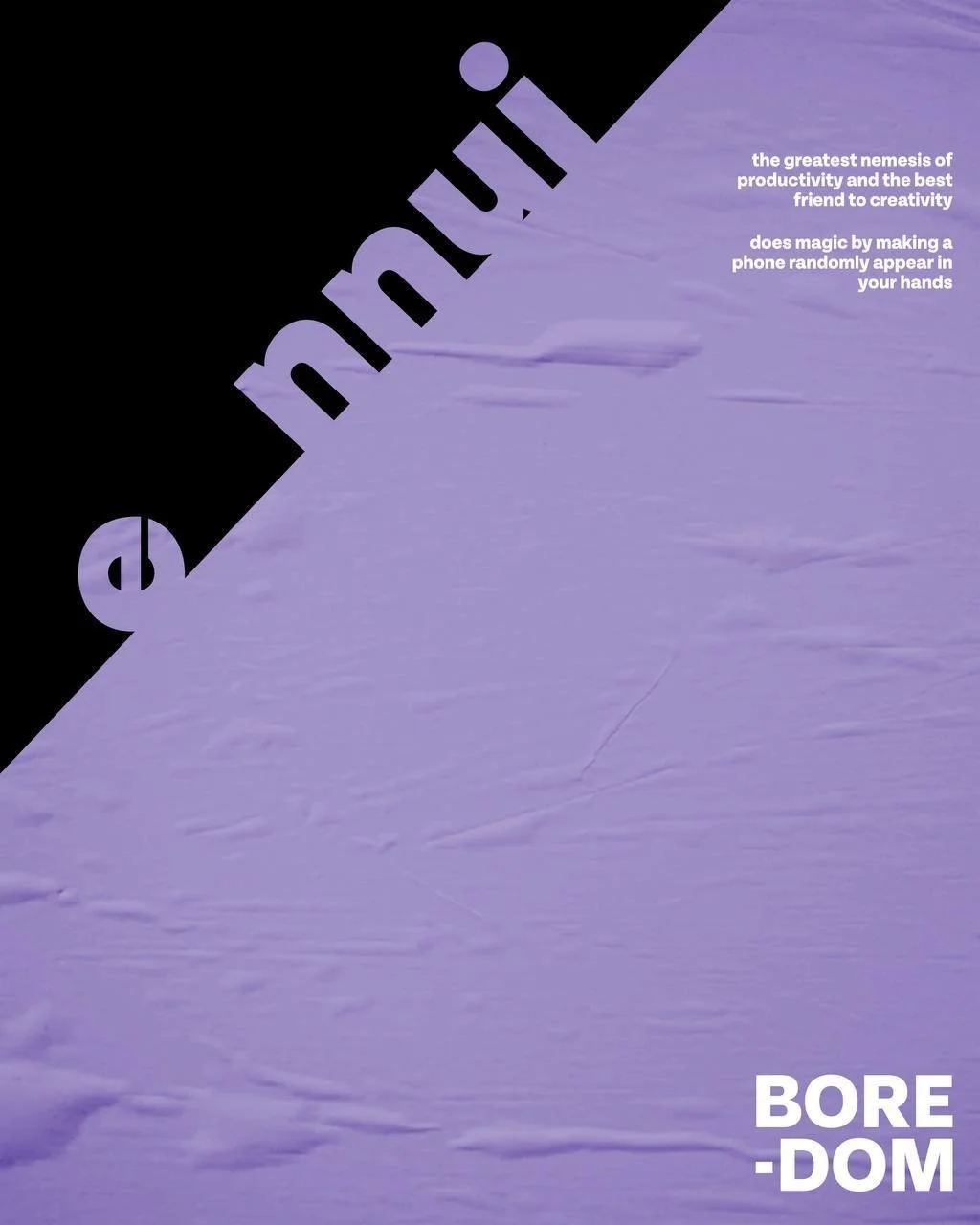 or the so-called ‘boredom’ is lazy and always tries to limit any movement. Hence, this character’s poster is the most minimal in comparison to the other.