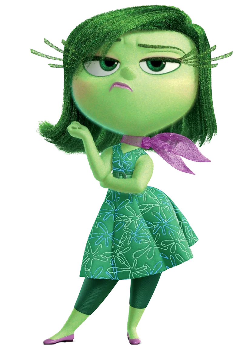 The huge ‘spot’ shape not only resembles of the flowers on Disgust’s dress but also reflects her tendency to exaggerate and be overly dramatic.