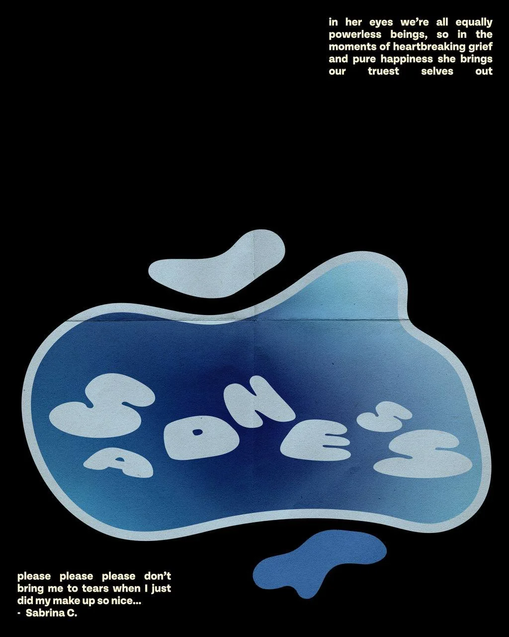 An inflated type mirrors the character’s rounded silhouette and soft personality. The letters are scattered around the puddle shape, reflecting Sadness’s unpredictable shifts in mood. The gradient fill allows to showcase the plethora of blue shades used in the character’s overall monochromatic visual identity.