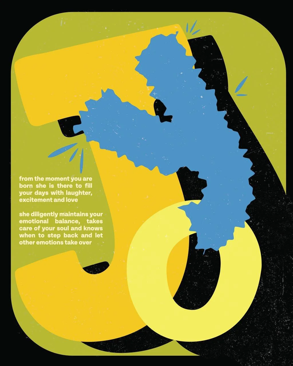 has a warm and soft personality. Her optimistic mindset reminds of the way children see the world. For these reasons, the poster features Joy’s name in large, rounded and playful letters, resembling of the ones found on the ABC book for kids.